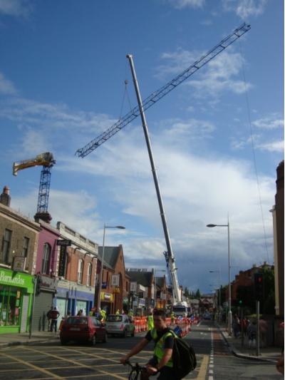 See Pictures below of Traffic Management to Enable the Erection of a Tower Crane in Dublin.