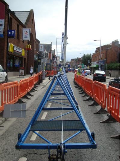 Permission must first be sought from the relevant local authority prior to the placing of such equipment on the roadway/pavement which involves preparing and submitting a detailed Traffic Management Plan illustrating where the equipment is going to be positioned, the works area, and how you propose managing the pedestrians/motorists while the equipment is on the roadway/pavement. Depending on the site location contact with the ESB, eircom, Dublin Bus, CIE, etc. is often necessary, all of which we can take care of when obtaining a permit from the Local Authority on our customers behalf.